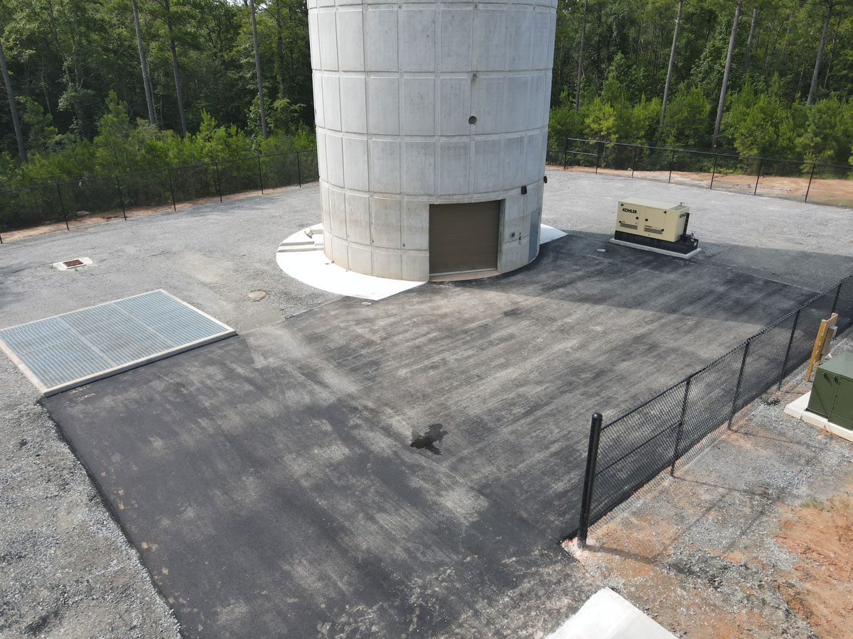 The scope of work for the project included: preliminary site work necessary for the construction of the water tank; installation of valve vault and valves; yard piping; installation of drain box and drain piping; grading; paving; and fencing.
